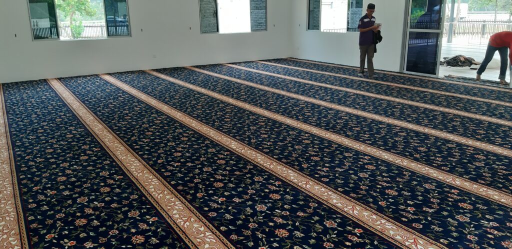 Specialized mosque carpets designed for comfort and long-lasting use in communal spaces.
